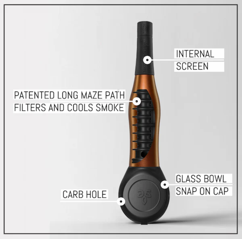 What makes it interesting is the internal design. Instead of relying on water, it uses a patented long maze path inside the body to drop the temperature before it reaches you. That longer route also helps trap more of the “extra stuff” that normally ends up making smaller pieces feel harsher and get dirty fast. In other words: it’s trying to keep the experience cleaner and easier without turning it into a whole ritual.
